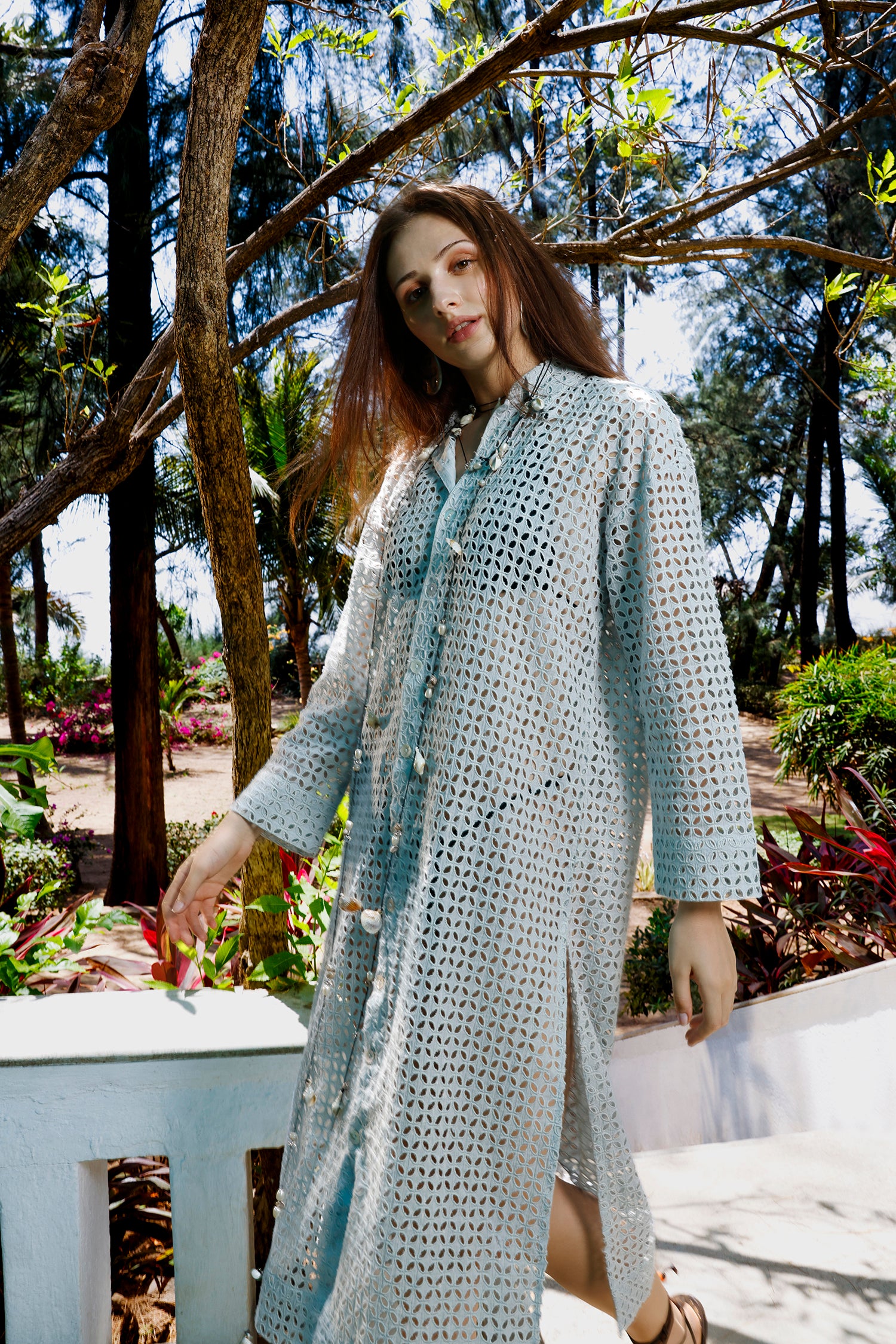 Get ready to make a statement (to yourself!) with the Stella Eyelet shirt dress. Crafted from breezy cotton, this charming button up is ideal for warm days by the shore or getaway adventures. Featuring delicate embroidery and sheer accents, it effortlessly combines laid-back and stylish vibes. Just top it off with shades and your go-to sandals! So why wait? Kick back and loosen up (literally).